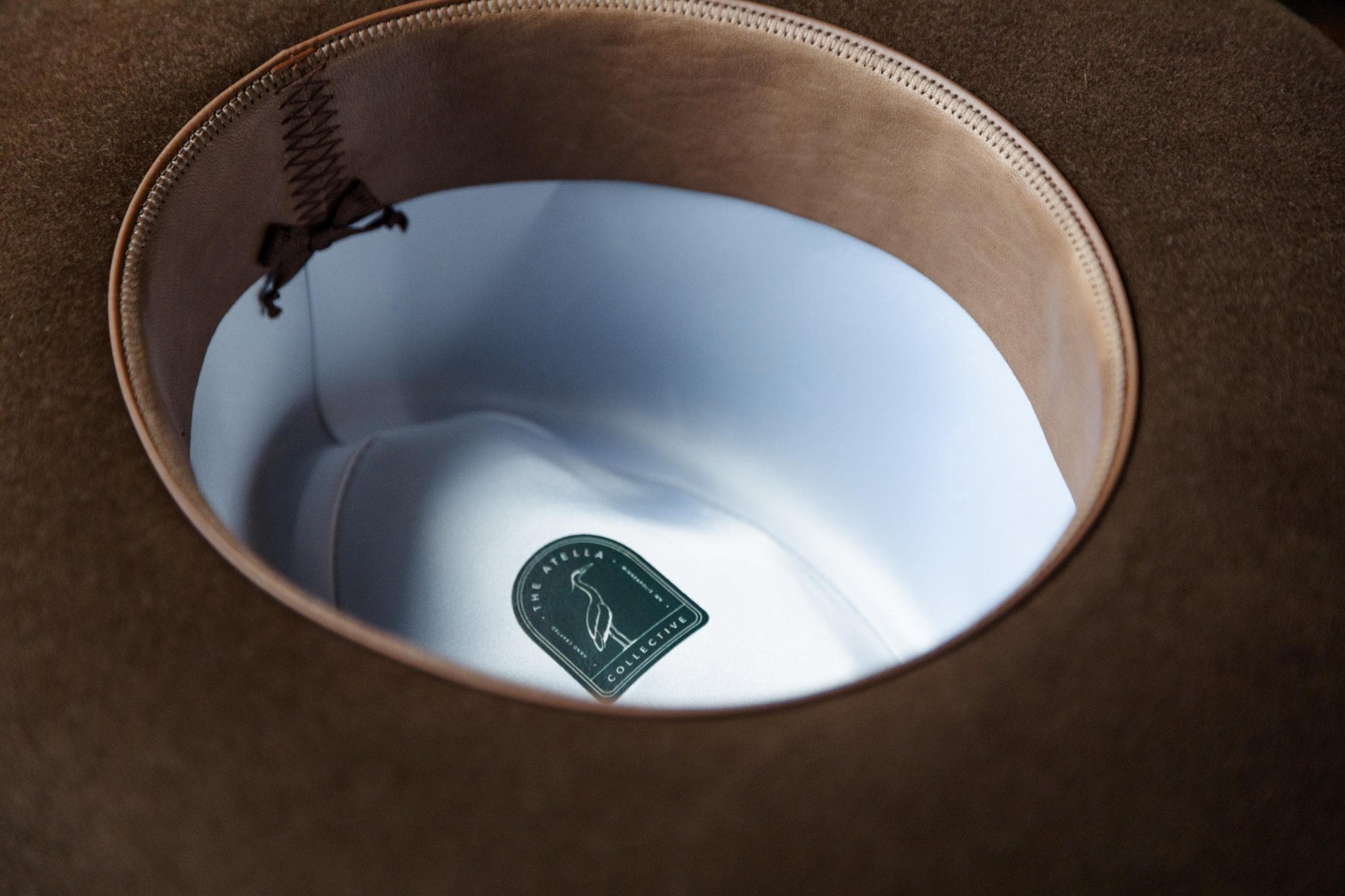 This custom Clintwood hat from Man with No Name is made from premium Portuguese rabbit felt in Allspice color. This hat features a hand sewn brim edge ribbon and leather hat band. Tailored to your exact size for a perfect fit, this made-to-order hat. Please allow 8 weeks for production from size confirmation and payment.