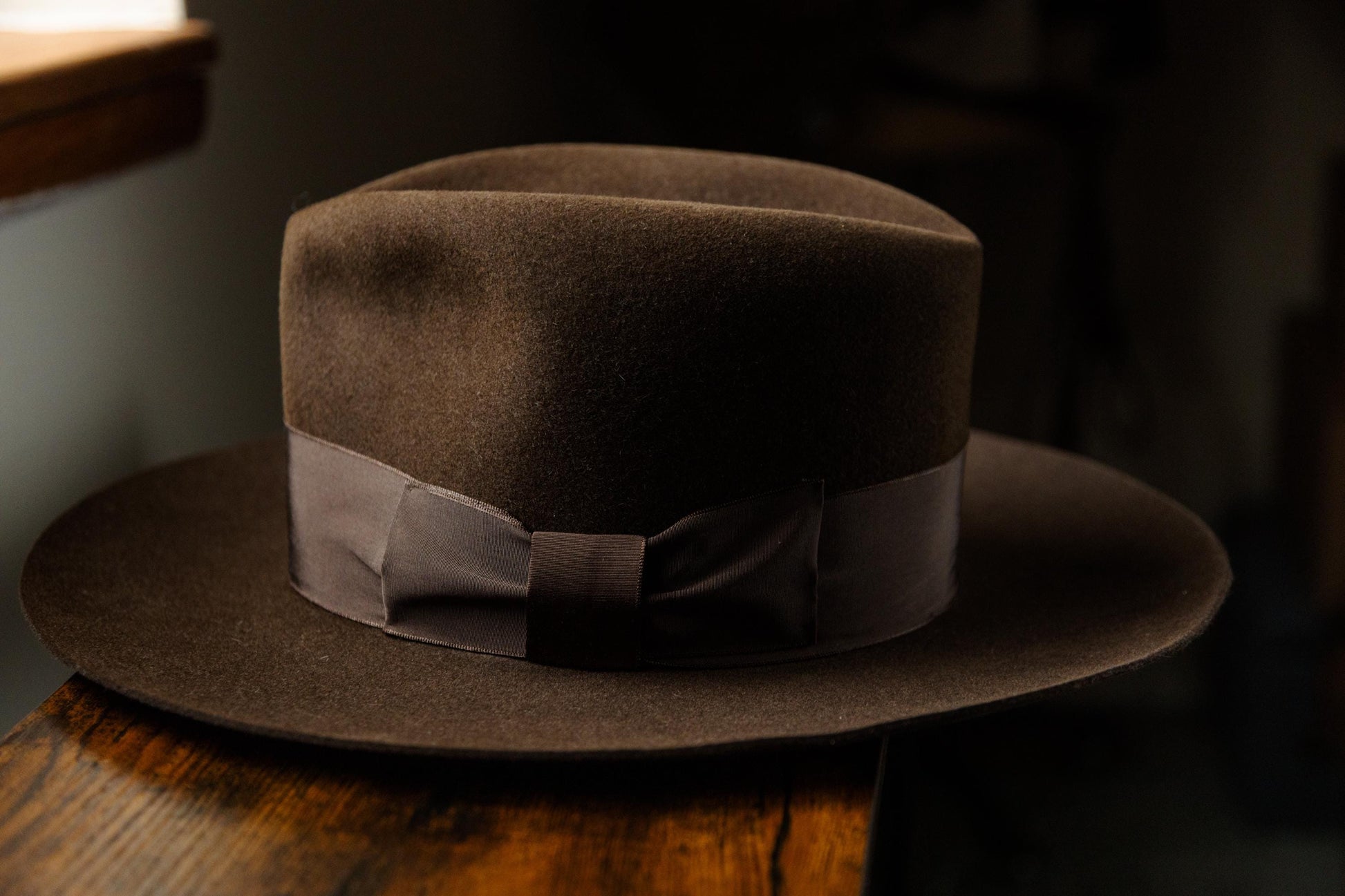 This custom Fourth Doctor’s -style fedora from the classic series of Doctor Who, is made from premium Portuguese rabbit felt in deep sable color. Dressed with a nice wide vintage ribbon. Tailored to your exact size for a perfect fit, this is a made-to-order hat.